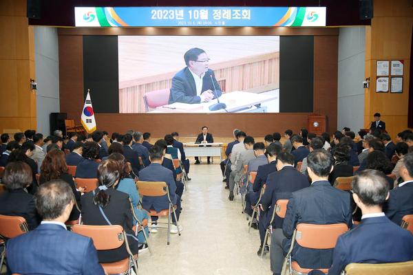 창원특례시(시장 홍남표)는 5일 시청 시민홀에서 5급 이상 간부 공무원 200명이 참석한 가운데 10월 정례조회를 개최했다.