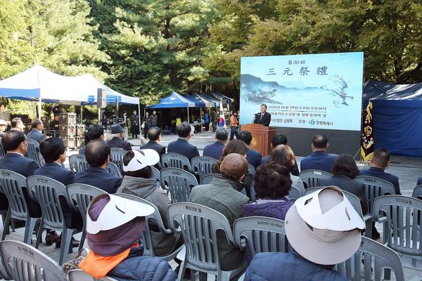 삼원제례는 오랜 세월 향토문화를 계승하며 지역의 화합을 도모해 온 삼원회의 대표 행사로, 올해로 30회를 맞으며 그 의미를 더욱 깊게 했다. 이날 행사에는 시민과 관계자 등 300여 명이 참석했으며, 장금용 창원특례시장 권한대행이 초헌관으로 참여해 제례를 봉행하고 축사를 전했다.