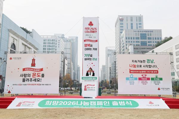 한편, 창원시는 희망2026나눔 캠페인을 통해 내년 1월 31일까지 총 62일간 ‘행복을 더하는 기부, 기부로 바꾸는 창원’을 슬로건으로 나눔온도 100도씨(℃) 달성을 목표로 후원물품 모집 및 다양한 모금 활동을 이어갈 예정이다.