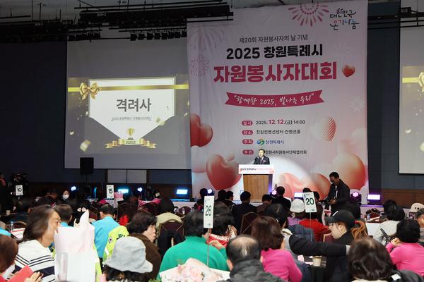 창원특례시는 12일 창원컨벤션센터에서 ‘2025년 창원시 자원봉사자 대회’를 개최했다. 이번 행사는 자원봉사자의 날을 기념하고, 지역 곳곳에서 묵묵히 헌신해 온 자원봉사 활동을 널리 알리기 위해 창원시자원봉사단체협의회(회장 전정숙) 주관으로 마련됐다.