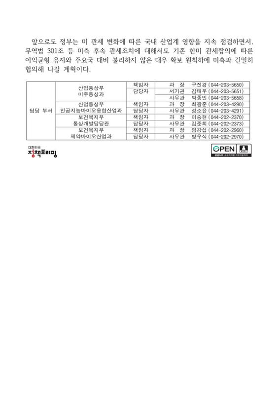 (참고자료)美 백악관, 의약품에 대한 무역확장법 232조 관세 발표
