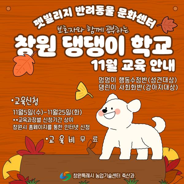 펫빌리지 반려동물 문화센터‘창원 댕댕이 학교’ 11월 교육 안내