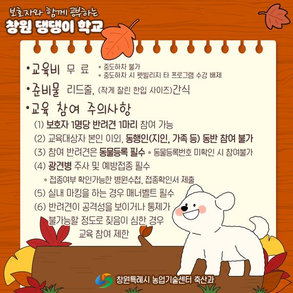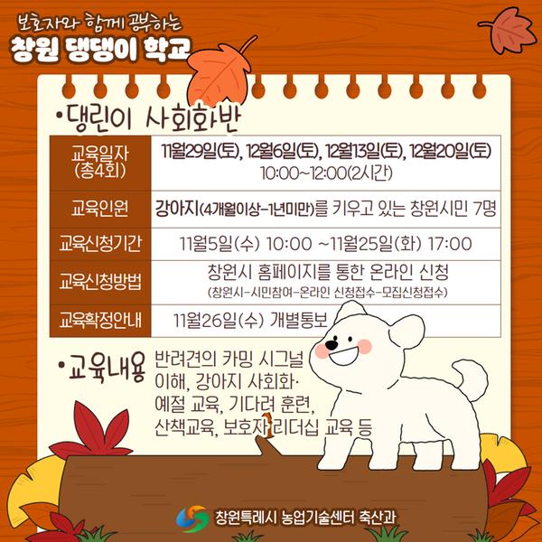 ☞☞ 댕린이 사회화반 ☞ https://www.changwon.go.kr/cwportal/10311/10486/10487.web?amode=view&idx=1574