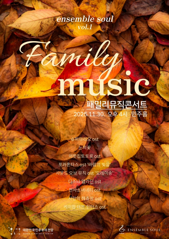 11월을 맞이하여 대한민국민주주의전당에서 특별한 음악회를 아래와 같이 개최하오니 관심 있는 분들의 많은 참여 바랍니다.