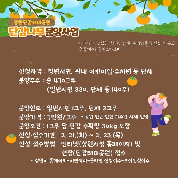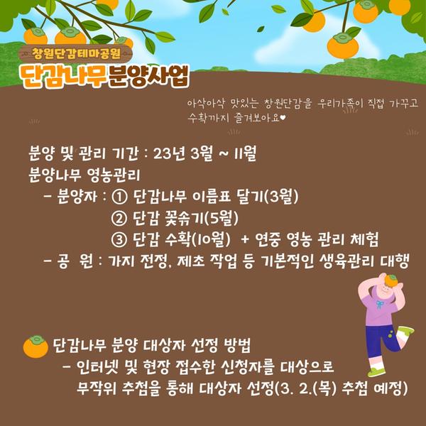2023년 창원단감테마공원 단감나무 분양사업과 관련하여 아래와 같이 공고합니다.