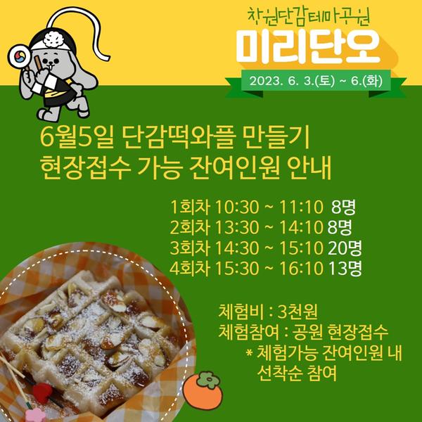 ★6월5일 단감떡와읖 만들기 체험 잔여 인원 현장 접수 안내★