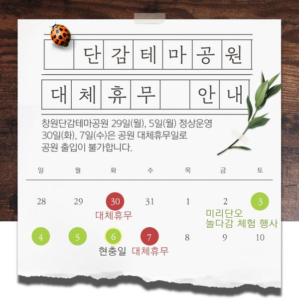 ● 대체휴무일 : 5월30일(화) , 6월7일(수)