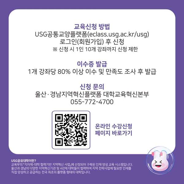 USG공유대학에서 울산·경남 지역민을 위한 「제2기 USG 온라인 공개강좌」를 아래와 같이 운영하오니, 많은 관심 부탁드립니다.