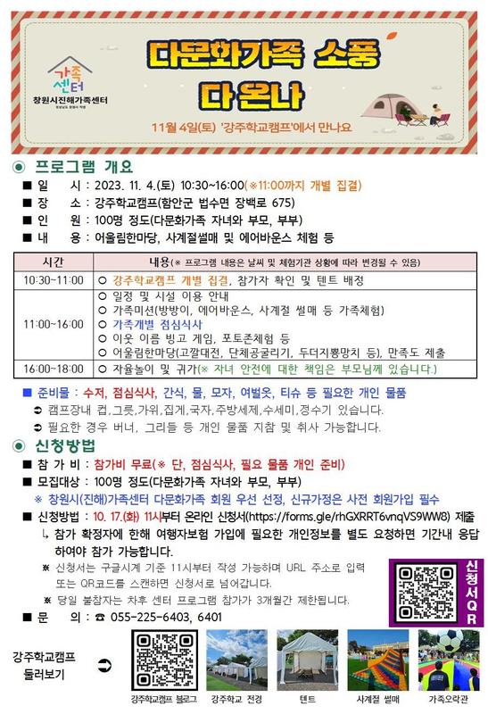 창원시진해가족센터에서는 다문화가족의 자주적 활동과 어울림 장을 통한 가족 소통력 향상 및 가족친화문화 조성을 위해