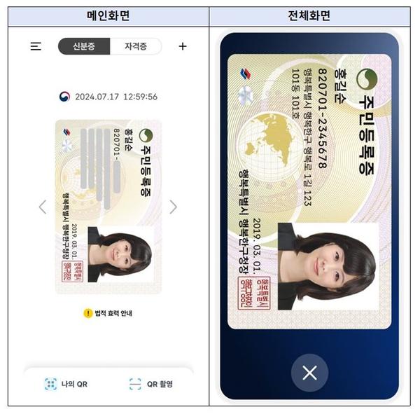 ○ 사용처 : 모바일 주민등록증은 실물 주민등록증과 법적으로 동일한 효력