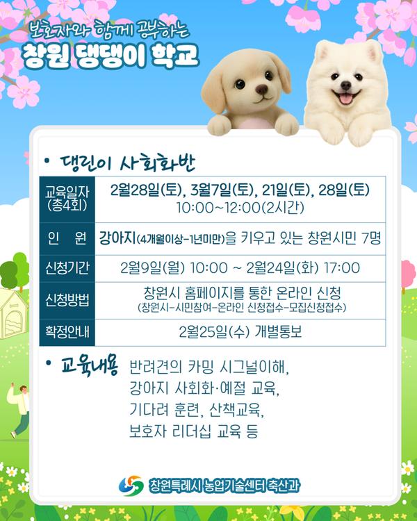 ___* 댕린이 사회화반(주말과정) 신청 →https://www.changwon.go.kr/cwportal/10311/10486/10487.web?amode=view&idx=1662