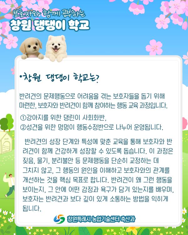 펫빌리지 반려동물 문화센터‘창원 댕댕이 학교’ 댕린이 사회화반 교육 안내