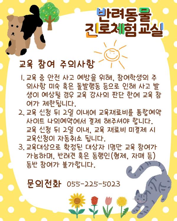 ○ 교육장소 : 펫빌리지 반려동물 문화센터(성산구 상복동 ☞ https://naver.me/xNLZEuD9 )
