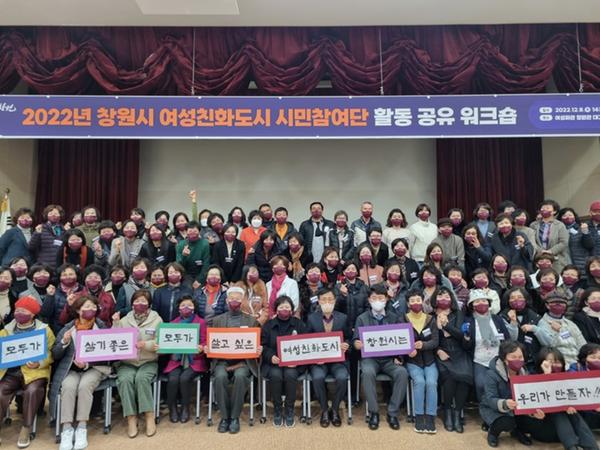 창원특례시(시장 홍남표)는 지난 8일 여성회관 창원관 대강당에서 시민참여단 130명이 참여한 가운데 ‘2022년 여성친화도시 시민참여단 활동 공유 워크숍’을 개최했다고 밝혔다.