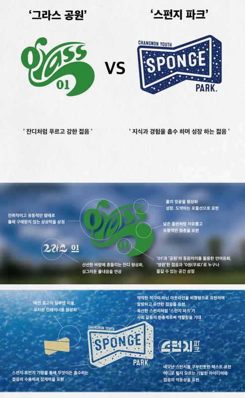<2안>의 ‘스펀지 파크’는 표면의 기공을 통해 수분을 흡수하는 스펀지의 특성과, 무엇이든 흡수하는 젊음의 수용력과 잠재력을 연관지은 명칭으로, 브랜드 디자인은 ‘지식과 경험을 흡수하여 성장하는 젊음’을 상징한다.