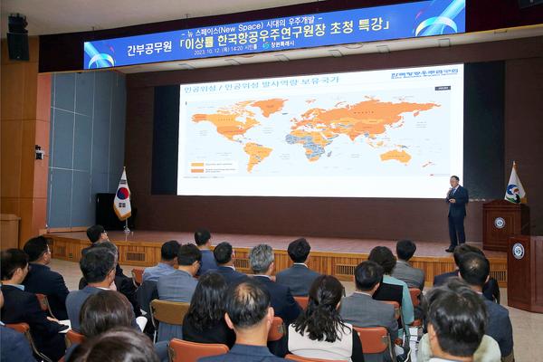 창원특례시(시장 홍남표)는 12일 시청 시민 홀에서 한국항공우주연구원 이상률 원장을 초청해 4·5급 간부 공무원 250여 명을 대상으로 항공우주산업 특강을 실시했다고 밝혔다.