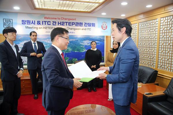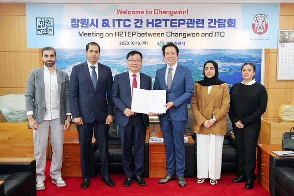 10.19.(목) 창원시를 방문한 ITC GBA프로그램 Jit Fen Tock(짓 펜 톡) 국장은 홍남표 창원시장에게 ITC의장의 서한문을 직접 전달하며, 창원시의 적극적인 H2TEP 협조에 대한 아부다비 정부의 감사를 전하였으며, 오는 11월 28일 아부다비 현지에서 개최하는 GBA 프로그램 개시 기념식에 홍남표 시장을 주요내빈으로 초청하였다.