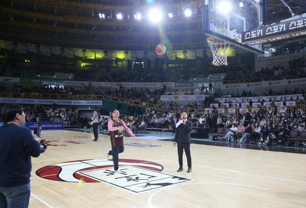 홍남표 창원시장, 시투로 LG세이커스 홈 개막전 열어