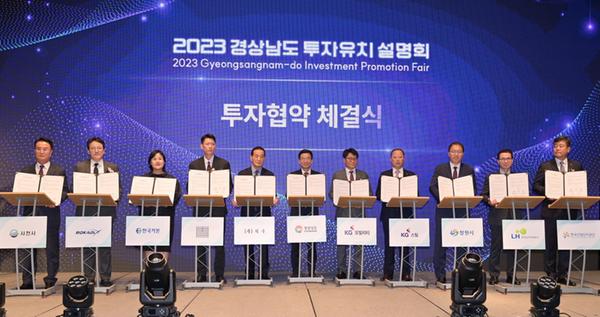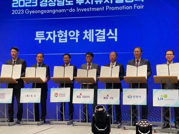 창원특례시(시장 홍남표)는 26일 ‘2023 경상남도 투자유치설명회’에서 KG모빌리티(주), KG스틸(주)와 투자금액 700억 원, 상시고용 100명 규모의 협약을 체결하고 지원에 나선다.