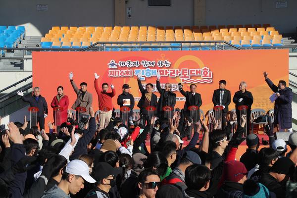 이날 집결지인 진해공설운동장에는 완연한 겨울 날씨에도 불구하고 2천 명에 가까운 인파가 모여들었다. 대회를 주최한 ‘진해마라톤대회조직위원회’에서는 해군의장대 시범공연을 비롯한 축하공연을 통해 다채로운 볼거리를 제공하였으며 대회 규칙 준수 등 안전사고 방지에 심혈을 기울였다.