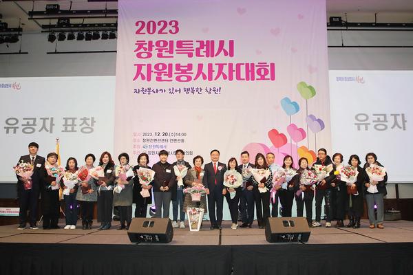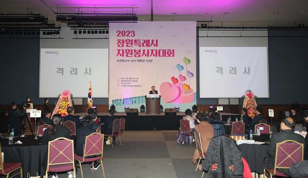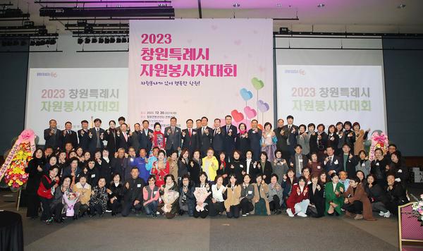 창원특례시(시장 홍남표)는 20일 창원컨벤션센터 컨벤션홀에서 자원봉사자의 날을 기념하기 위해 창원시 자원봉사단체협의회(회장 전태완) 회원 300여 명이 참여한 가운데 2023년 창원시 자원봉사자대회를 개최했다고 밝혔다. 자원봉사자의 날(12월 5일)을 기념하고 한 해 동안 지역사회 곳곳에서 헌신적인 활동을 한 자원봉사자들의 노고를 격려하고자 실시된 이번 대회에는 홍남표 창원특례시장, 김이근 창원 특례시의회 의장을 비롯한 도의원과 시의원 등이 참석하여 1부 기념식에는 자원봉사활동 영상 보고 및 자원봉사 유공자 표창 시상식, 축하공연과 2부 자원봉사자 화합 한마당 등으로 진행되어 한 해 의미 있는 마무리를 위한 시간을 가졌다.