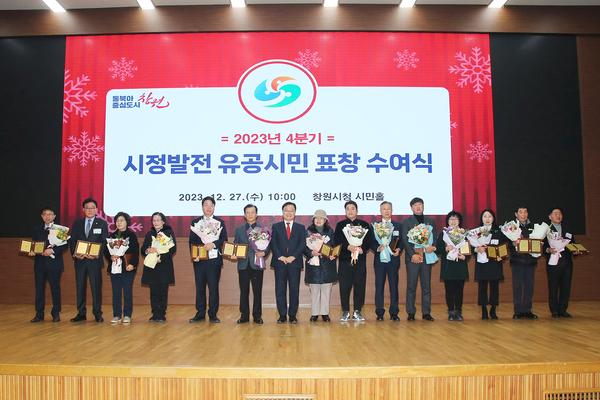 창원특례시(시장 홍남표)는 27일 오전 10시 시청 시민홀에서 ‘2023년도 4분기 시정발전 유공시민 표창 수여식’을 개최했다.