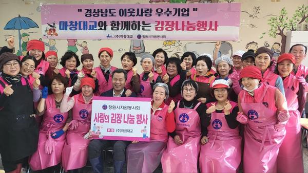 한편 ㈜ 마창대교(대표 김성환)는 김장담그기 행사에 300만원을 후원하였으며, 창원시자원봉사회(회장 오명자)는 의창구·성산구 15개 읍·면·동 600여명으로 구성되어 있으며, 지역사회에서 무료급식봉사, 밑반찬나눔, 한마음 다짐행사 등의 봉사활동을 활발하게 펼치고 있다.