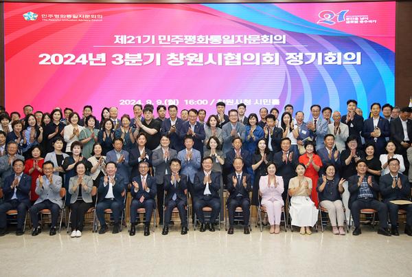 민주평화통일자문회의 창원시협의회(회장 정영식)는 9일 시청 시민홀에서 홍남표 창원특례시장, 손태화 창원특례시의회 의장, 자문위원 등 150여 명이 참석한 가운데 2024년 3분기 정기회의를 개최했다.