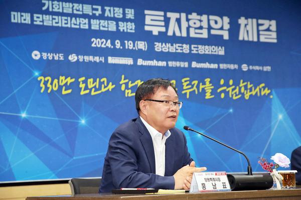 홍남표 창원특례시장은 “창원시 기회발전특구 지정이 이루어지면 지속 성장이 가능한 미래 이동 수단(모빌리티) 산업의 기반을 갖추게 될 것이다”며 “4개 사의 대규모 투자 결정에 감사드리며, 향후 투자가 원활히 진행될 수 있도록 행정적 지원을 아끼지 않겠다”고 밝혔다.