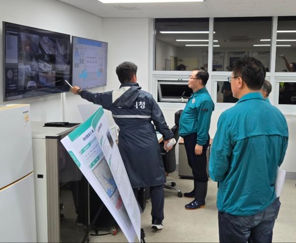 이후 마산 서항제1배수펌프장 상황실에서 펌프장시설물을 점검하며 향후 긴급 자연재난 발생 시 신속한 펌프 가동을 지시하였으며, 창원천을 찾아 하천 수위를 확인하고 시설물을 점검했다.
