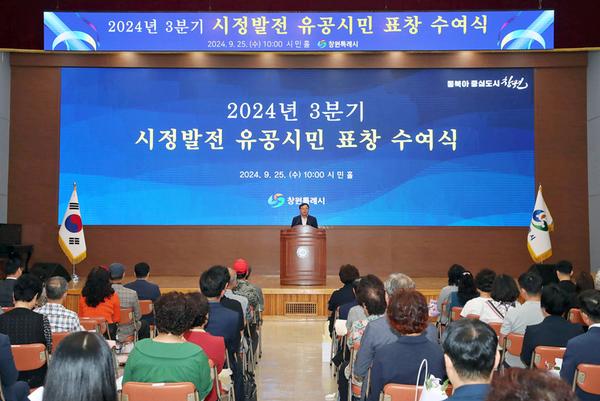 창원특례시(시장 홍남표)는 25일 시청 시민홀에서 ‘2024년도 3분기 시정발전 유공시민 표창 수여식’을 개최했다.