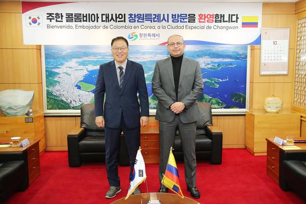 ♣사진설명 : 사진1. 왼쪽부터 장금용 창원특례시장 권한대행, 알레한드로 펠라에스 로드리게스 주한 콜롬비아 대사
