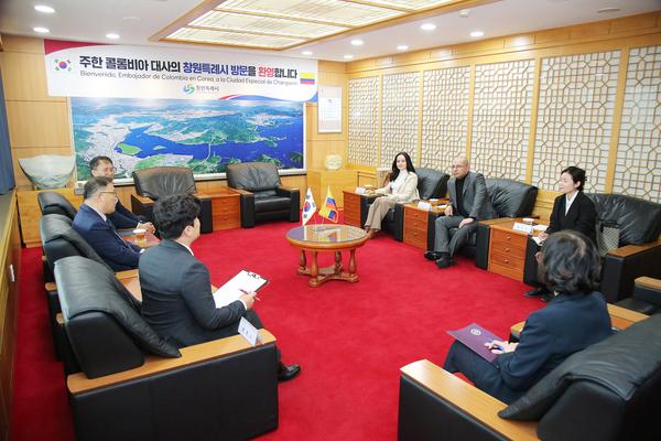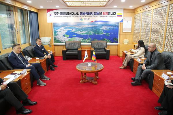 창원특례시는 24일 알레한드로 펠라에스 로드리게스(Alejandro Peláez Rodríguez) 주한 콜롬비아 대사가 창원시를 방문해 양국 간 산업·통상 협력과 글로벌비즈센터(GBC) 남미 거점 확장 방안을 논의했다고 밝혔다.