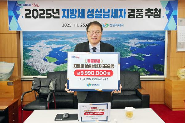 창원특례시는 25일 어려운 경제 여건 속에서도 지방세를 성실하게 납부한 시민들에게 감사의 뜻을 전하고, 건전한 납세 문화를 확산하기 위해 ‘2025년 지방세 성실 납세자 경품 추첨 행사’를 실시했다.