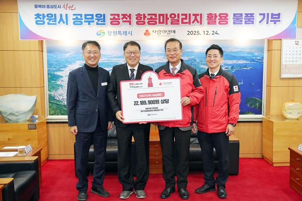 창원특례시는 24일 시청 접견실에서 장금용 시장 권한대행과 강기철 경남사회복지공동모금회장을 비롯한 관계자 등이 참석한 가운데 공적 항공마일리지를 활용한 생활용품 전달식을 개최했다.