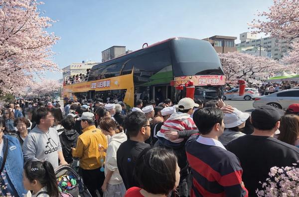 지난 27일부터 운행 중인 벚꽃 투어버스는 3월 31일까지 약 2,800명의 관광객이 이용했으며, 진해군항제를 더욱 색다르게 즐길 수 있는 관광 콘텐츠로 활용되고 있다. 특히 2층 버스의 높은 시야에서 즐기는 벚꽃 조망 덕분에 평일과 주말을 가리지 않고 관광객들의 발길이 꾸준히 이어지고 있다.