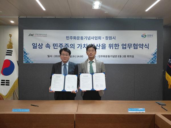 창원특례시(시장 권한대행 장금용)는 지난 8일 서울 민주화운동기념관에서 민주화운동기념사업회(이사장 이재오)와 ‘일상 속 민주주의 가치 확산을 위한 업무 협약(MOU)’을 체결했다고 밝혔다.