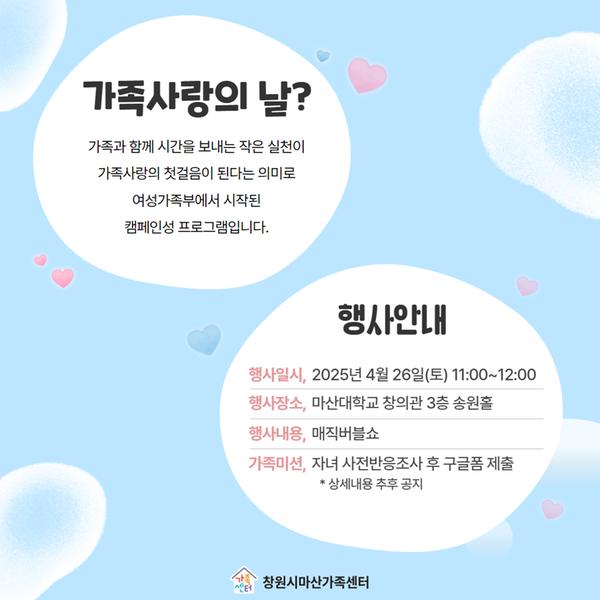 [4월 가족사랑의 날-매직버블쇼 신청가족 모집]