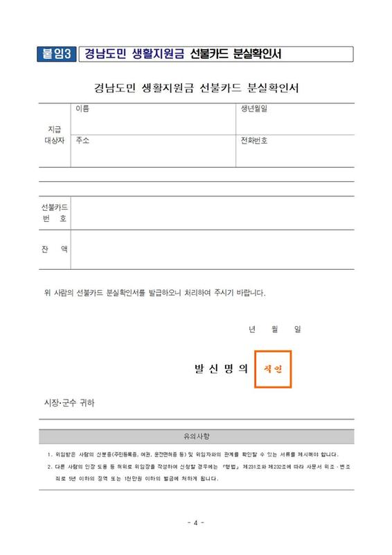 도민지원금 서식
