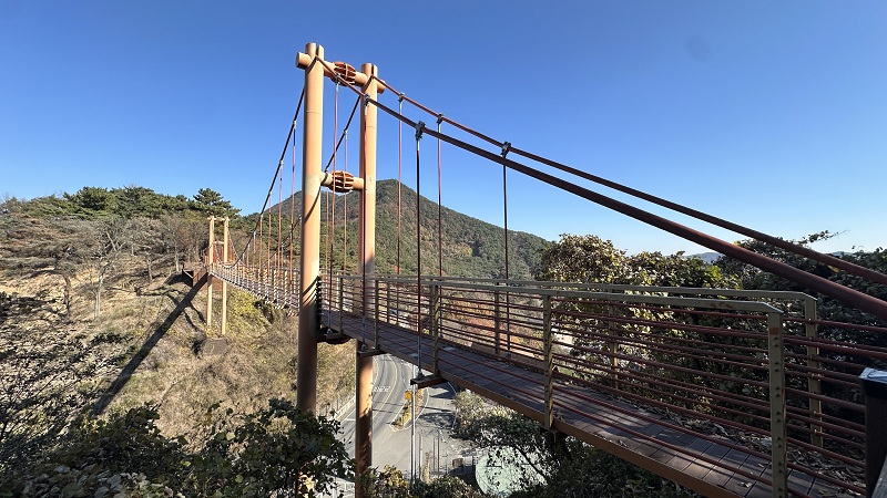 온천단지 뒤에는 마금산(280m)과 천마산(370m)이 있다. 높지 않으니 시간적·체력적 여유가 된다면 한번 올라 보자. 두 산 가운데 70m 길이의 구름다리가 있다. 바람에 흔들려 제법 아찔하지만, 구름다리에서 내려다보는 온천단지와 농촌 들녘의 풍경이 마음에 쉼을 가져다준다. /박정은 기자/