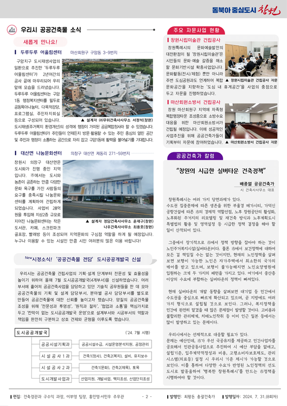 창원특례시 총괄·공공건축가 뉴스레터 제8호(2024년7월)입니다.
