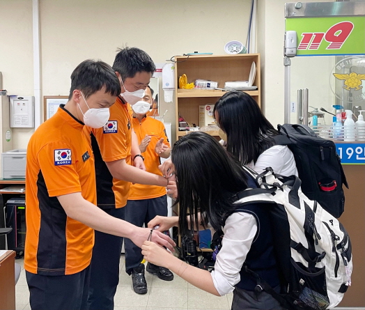 한일여고 학생들, 마산소방서에 코로나19 노고 격려차 자체 제작 팔찌 전달해