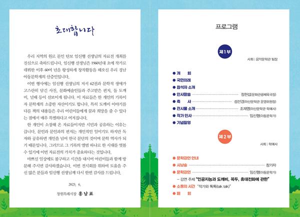 마산문학관 제54회 특별기획전 초대장 (아동문학가 임신행 자료전)