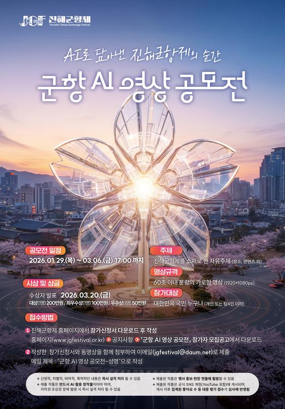 ※ 진해군항제 공식 홈페이지에서 참가신청서 다운로드 후 작성[홈페이지(www.jgfestival.or.kr)>공지사항>군항 AI 영상 공모전 참가자 모집공고]