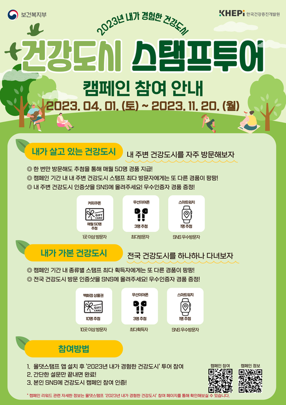 GPS 기반 어플리케이션(올댓스탬프)을 통해 전국 53개소 건강도시 장소 방문인증을 하는 스탬프투어로,