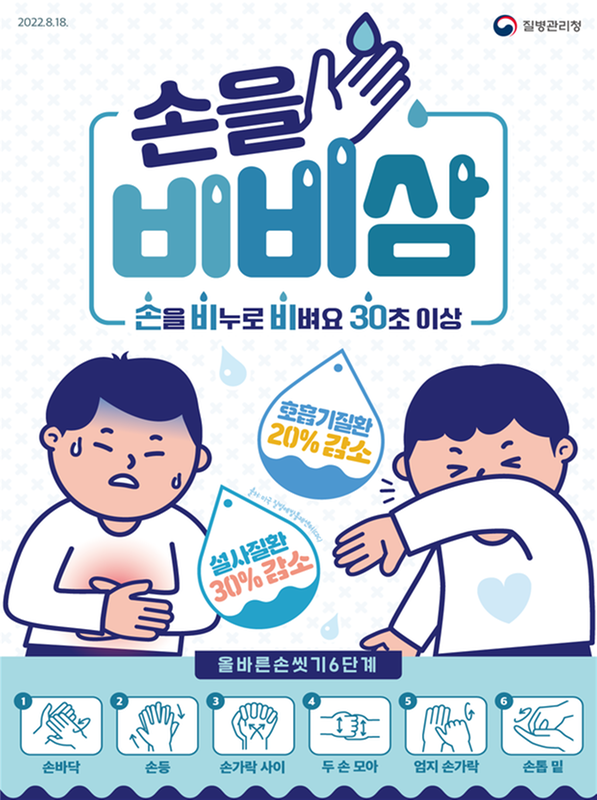 밀폐·밀집한 장소나 인구이동으로 사람간 접촉이 늘어나는 하계 휴가지 등에서 인플루엔자, 코로나19 등 호흡기 감염병을 예방하기 위해 외출 전·후 30초 이상 비누로 손씻기, 기침예절, 호흡기 증상 발생시 마스크 착용 등 개인위생수칙을 안내하오니 적극 실천하여 건강한 여름 보내시기 바랍니다.