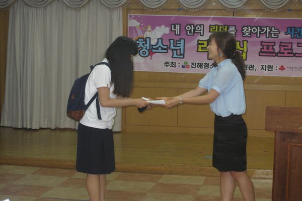 개인의 자긍심과 환경에 대한 적응적 기능을 강화하여 개인적 학업 및 진로, 발달 과업 성취를 강화하는 리더십 프로그램이 종결되었다 청소년자활지원관 5월 13일부터 6월 9일까지 총 5회기 동안 프로그램을 진행하였으며, 저소득 청소년 11명이 참여하였다. 프로그램에서는 리더에 대한 이해, 개인의 성공경험, 꿈을 이룬 사람의 공통점 찾기, 나의 성공 모습 그리기 등 다양한 프로그램을 개발하여 제공하였다. 프로그램에 참여한 청소년은 “이번 프로그램을 통해 어려운 일도 즐기면서 할 수 있게 되었다”고 평가하였다.