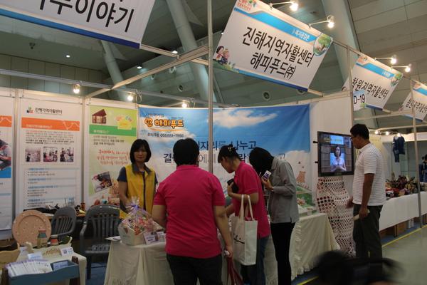 9월 16일 ‘함께하는 창원, 나누는 사랑’이란 주제로 열린 이번 창원복지박람회에는진해지역자활센터를 비롯한 창원지역 55개 복지 관련 시설과 단체가76개 부스를 운영하며 주요 복지프로그램을 소개하였다.진해지역자활센터에서는 나무이야기, 쿠키데이, 해피푸드(주)가 참여하여원목소품, 수제쿠키, 행사도시락을 홍보하며 수제쿠키 시식도 함께 하였다복지행복존ㆍ복지희망존ㆍ복지나눔존ㆍ복지공감존 등 4개의 섹션으로 나눠 운영된 박람회에는 사회복지기관과 시설, 단체, 시민 등 1천500여명이 다양한 복지정책과 프로그램을 체험했다성우 배한성씨가 직접 체험한 봉사활동을 소개하는 복지특강도 이루어졌으며, 복지퀴즈, 마술쇼, 버블쇼, 동아리 공연, 헌혈, 기아대책기구 긴급구호 캠페인, 미아찾기 홍보 등의 부대행사와 나눔장터가 운영됐다.