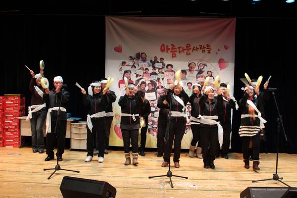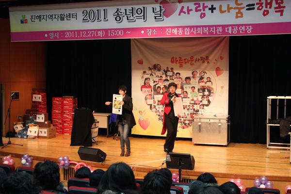 12/27(화)에 2011년의 자활사업의 평가와 성과들을 공유하고, 나눔을 실천하는 장을 마련하기 위한 송년의 날 행사를 진행하였습니다. 많은 분들이 나눔을 실천하기 위해서 내어주신 물품으로 나눔장터를 열어 필요한 물품을 나누어갈 수 있었습니다. 기념식에는 1년간 수고하신 분들께 시상 및 자활사업의 평가 발표를 하였으며, 2부에는 마술공연, 사업단주민들과 실무자, 부설기관인 1318행복지대지역아동센터 청소년들의 공연으로 따뜻하고 행복한 연말을 맞이하는 시간이 되었습니다. 2012년에는 참여주민들의 사례관리를 통해 자활하는 분들이 많이 나오기를 기대해봅니다.