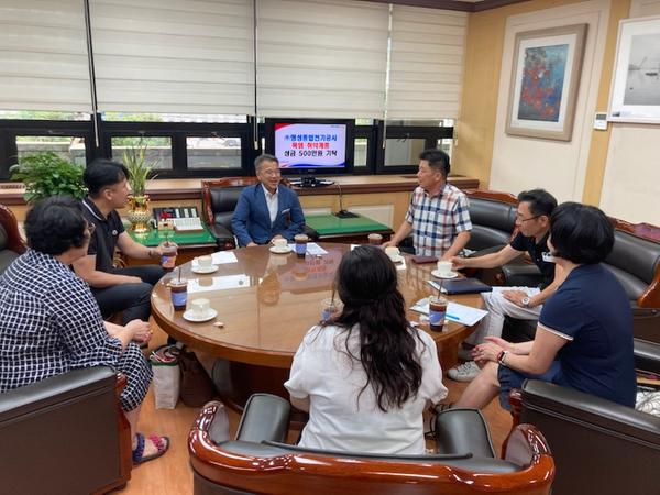 기탁 사진(왼쪽에서 세번째 강창열 구청장, 네번째 김종만 대표)
